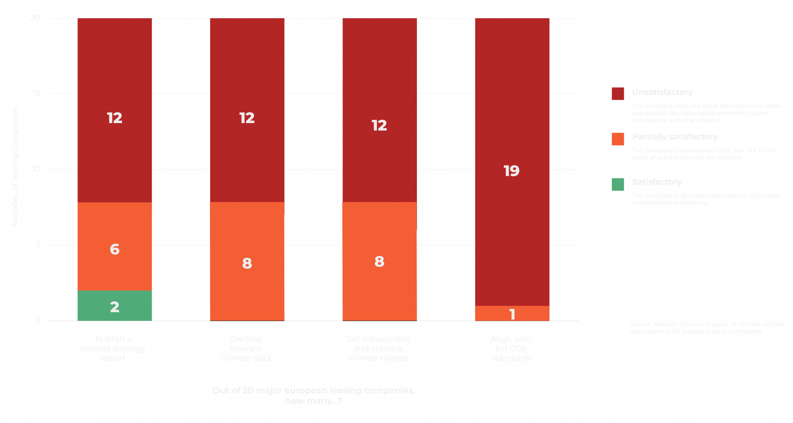 In response to this regulatory gap, Reclaim Finance and T&E analyzed the climate disclosures [1] of twenty major leasing companies [2]. The findings are concerning:
