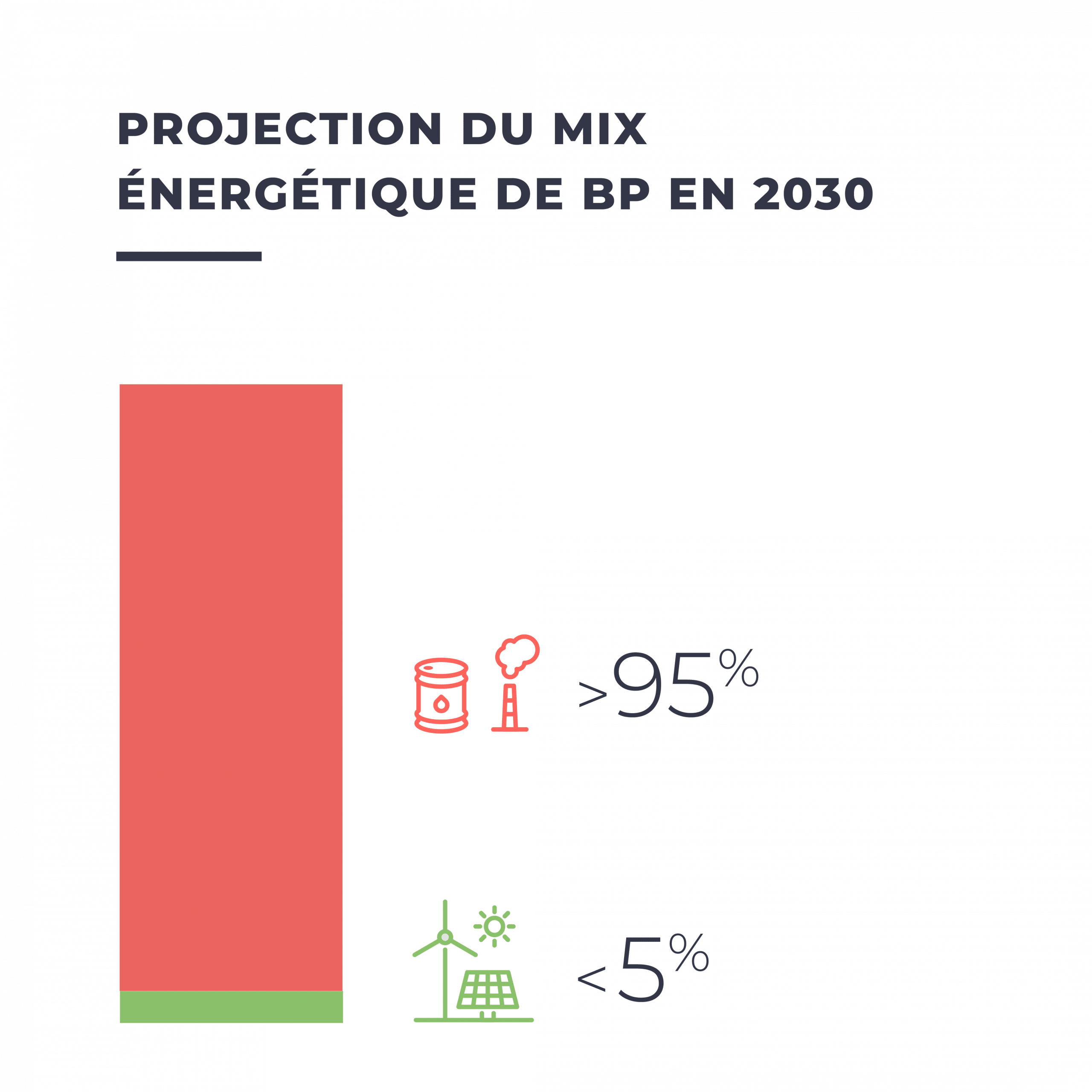 BP vise à développer 50 GW de capacité renouvelable d’ici 2030.10 GW net seront opérés par BP à la fin de cette période, ce qui représenterait moins de 5% du mix énergétique de BP.