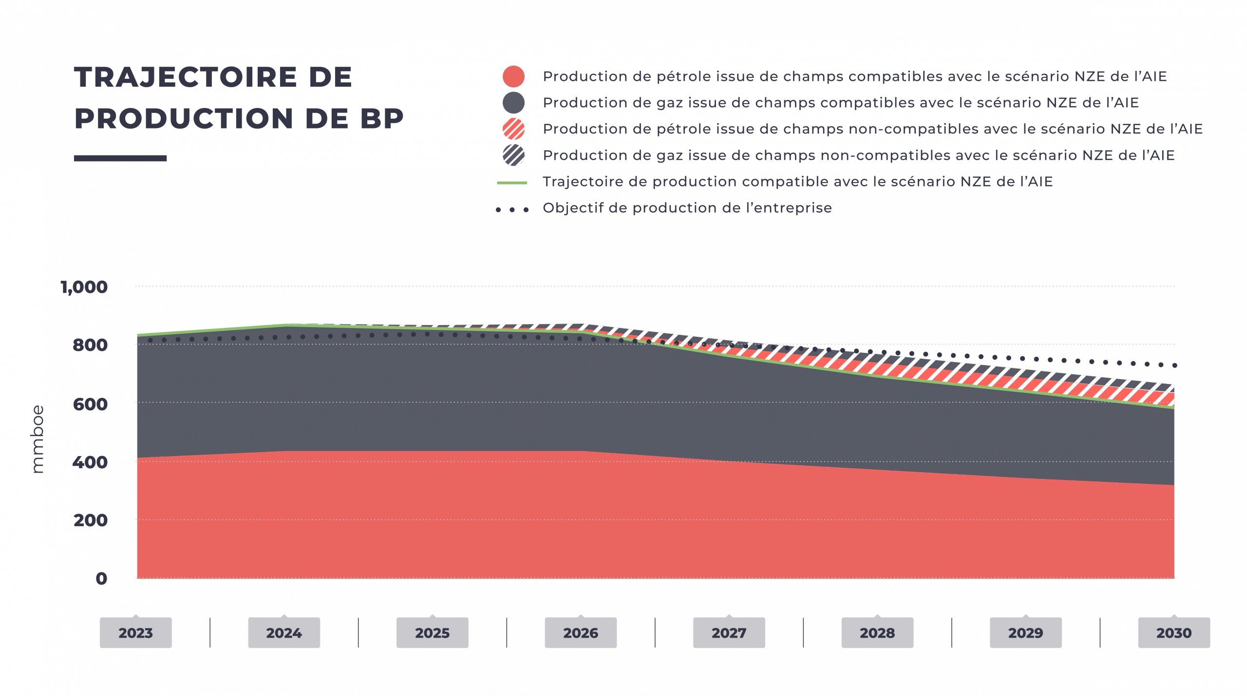 BP ne s’est pas engagée à cesser de développer de nouveaux projets pétroliers et gaziers au-delà de ceux déjà en cours de développement et la réalisation de son objectif de production pour 2030 nécessitera l’acquisition de nouveaux actifs ou le développement de nouveaux gisements, en plus de ses plans d’expansion actuels à court terme.