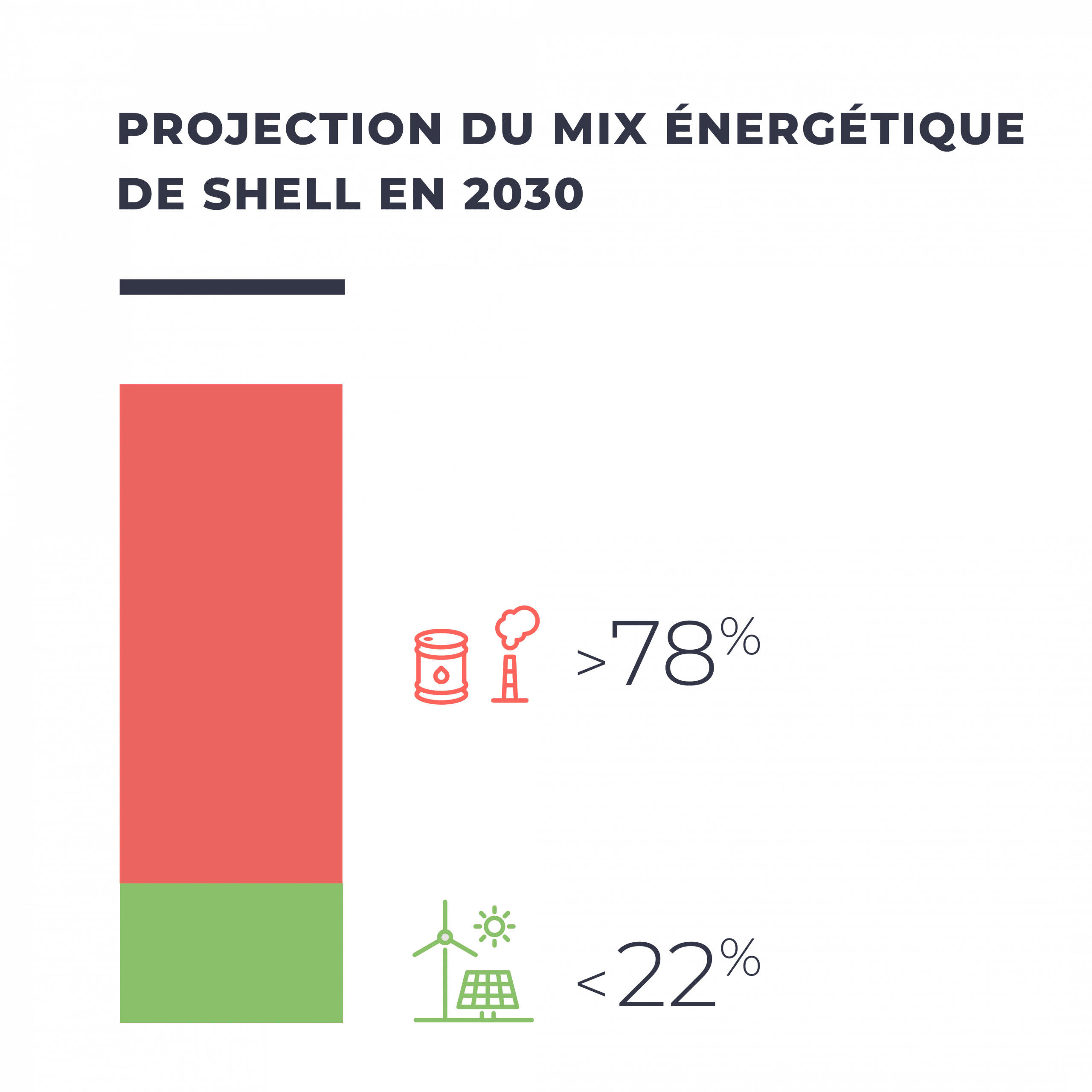 Shell indique qu’elle prévoit de fournir de l’électricité provenant de sources renouvelables à 50 millions de ménages d’ici à 2030. Si Shell atteint cet objectif et en prenant l’hypothèse que sa production d’énergie renouvelable est destinée aux marchés développés, la part maximale d’énergie renouvelable dans son mix énergétique restera inférieure à 22 % en 2030.