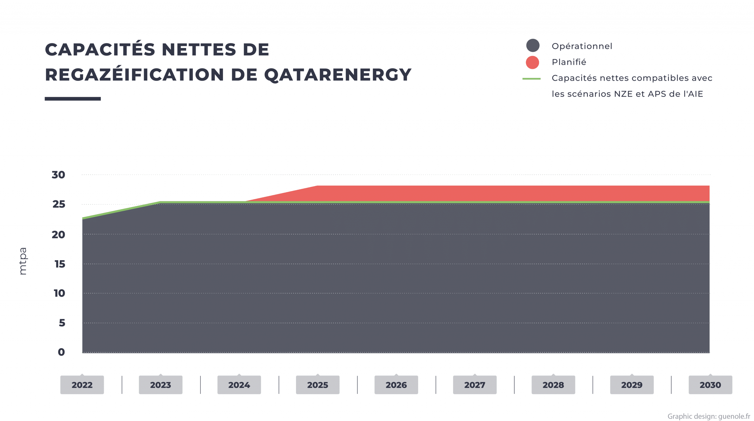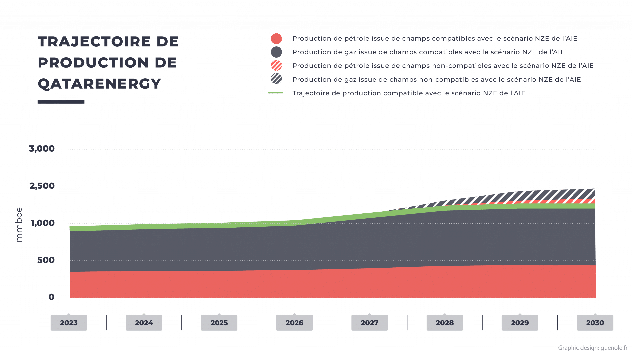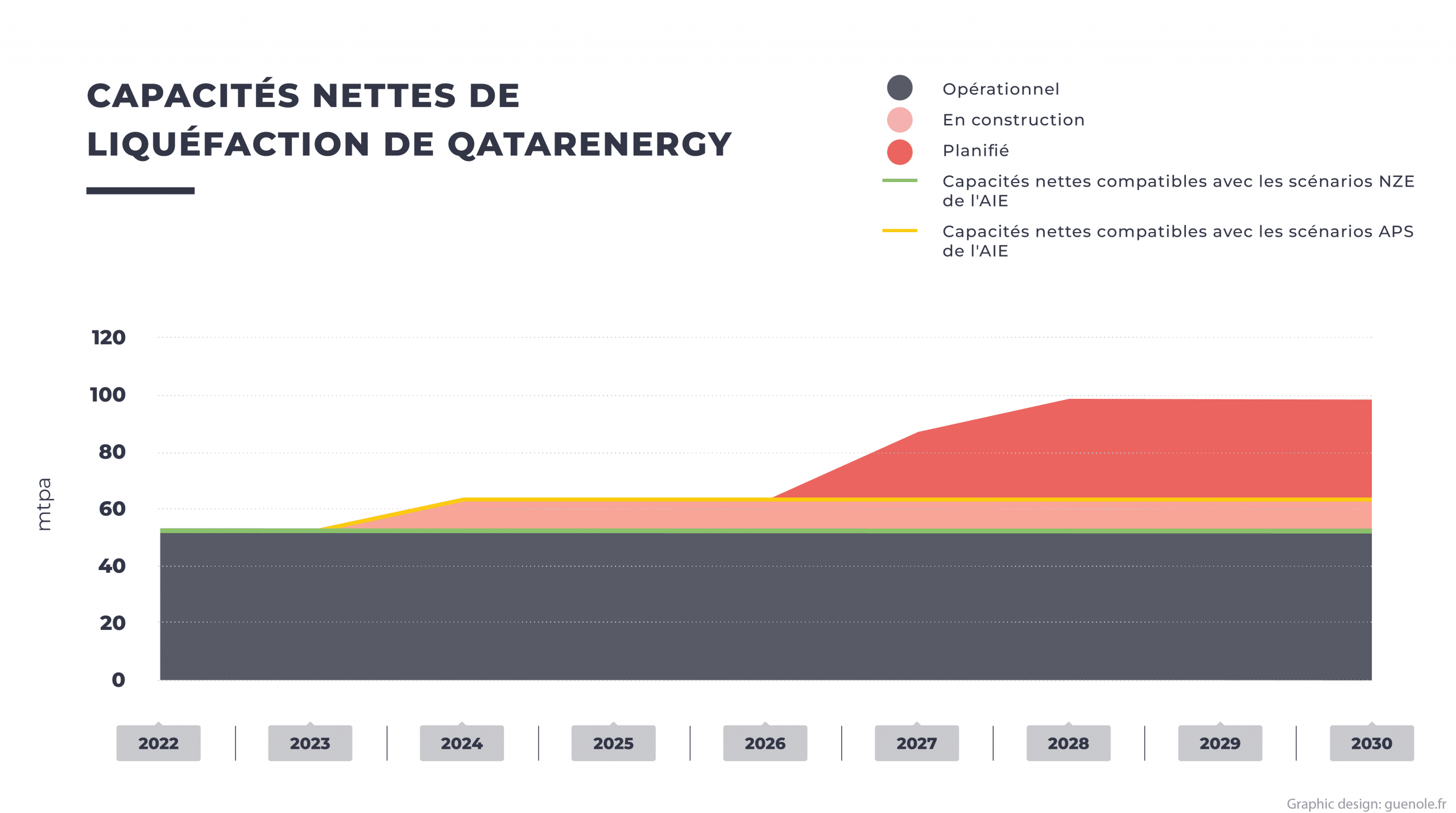 Les cibles de décarbonation de QatarEnergy pour 2030 ne concernent que les émissions des scope 1 et 2, en intensité seulement, sans aucune information sur les émissions de scope 3. En raison de ce manque de transparence, il n’est pas possible de calculer rigoureusement les émissions futures de gaz à effet de serre de QatarEnergy.
